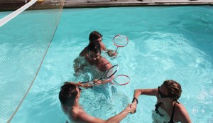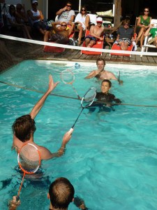 La météo prévue ingrate inquiétait les organisateurs des 3èmes championnats du monde de Water Badminton. Mais alors que les participants arrivent et que se dégoupillent les premières canettes, le ciel voilé de la Godfruit Arena laisse échapper de beaux rayons de soleil.