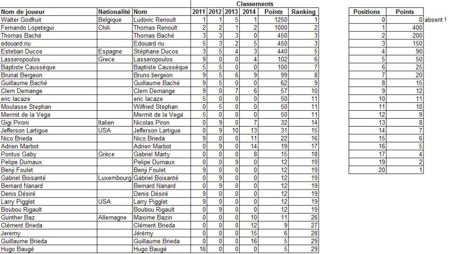 Le classement mondial à l’issue du championnat du monde 2014 – les 3ème, 4ème et 5ème dans un mouchoir… Ils pourront en découdre l’an prochain